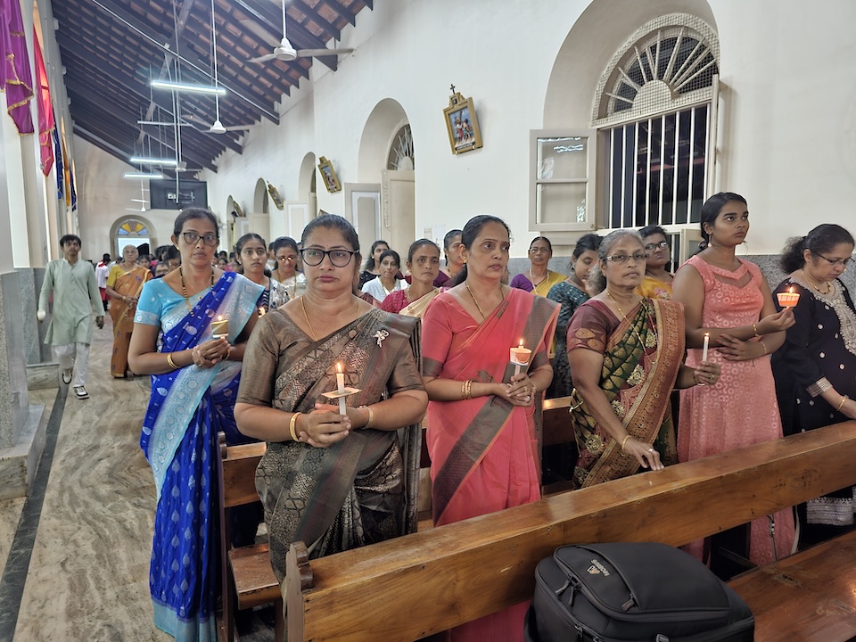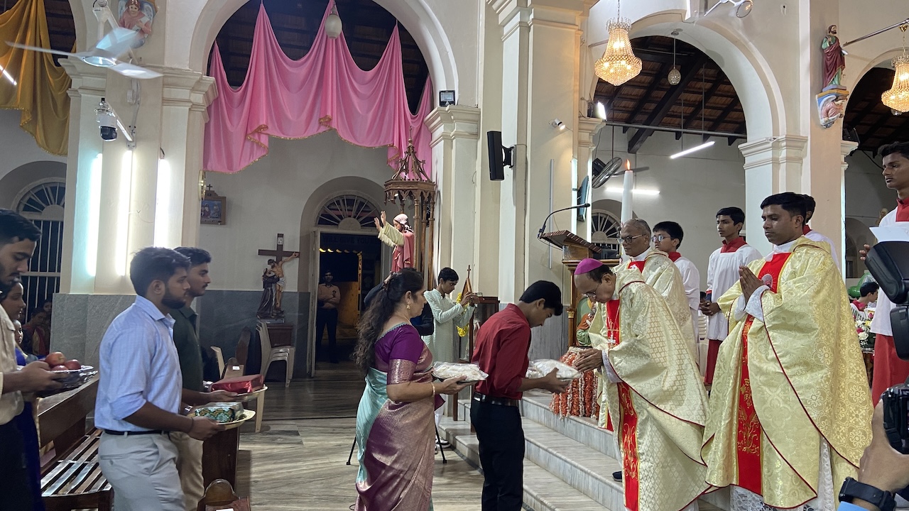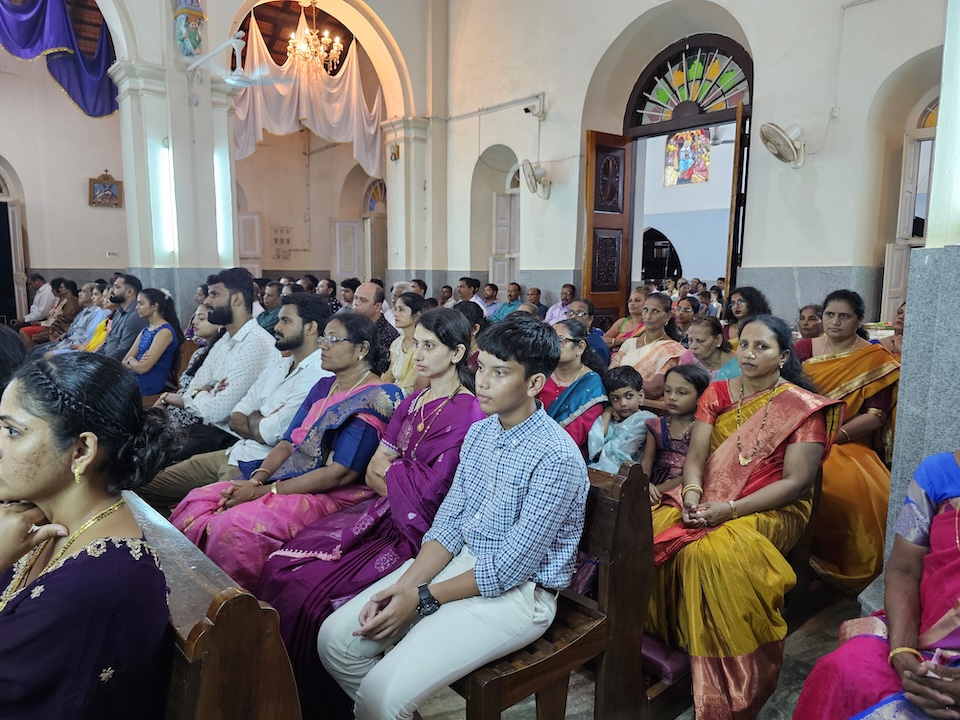 The Easter Vigil Mass began on April 19, 2025, at 7:00 PM. The principal celebrant was Most Rev. Dr. Gerald Isaac Lobo, Bishop of Udupi Diocese. He was supported by Msgr. Ferdinand Gonsalves (Vicar General), Fr Pradeep Cardoza (Assistant Parish Priest), Fr Dr Jencil Alva (Res. Priest), Fr Manoj Furtado SFX and Fr Parel Fernandes SFX (Pilar Fathers), and Fr Ronson D’Souza, a priest from the parish.