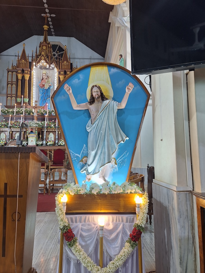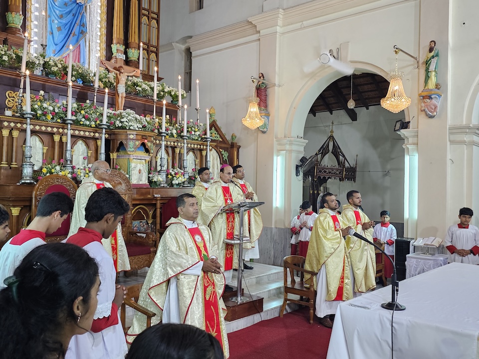 The Easter Sunday Mass took place on Sunday April 20, 2025 at 8:00 AM. Fr Pradeep Cardoza was the main celebrant, along with Msgr. Ferdinand Gonsalves and Fr Dr Jencil Alva.
