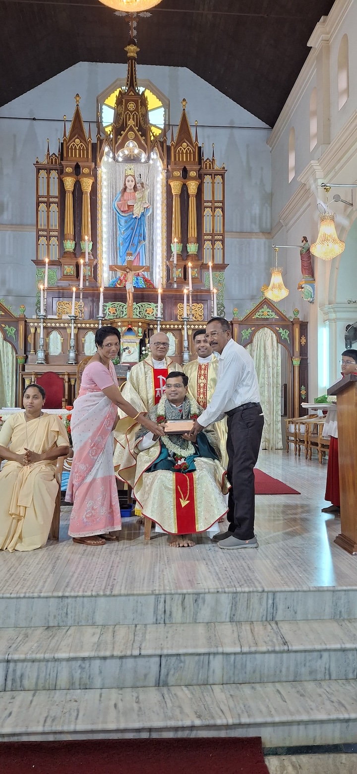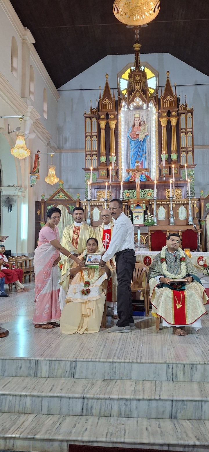 On the morning of 25th May 2025, a solemn and grace-filled Farewell Mass was celebrated at 8:00 AM in honor of Rev Fr Dr Jencil Alva, marking the conclusion of his dedicated pastoral ministry of seven months in the parish. The Eucharistic celebration was presided over by Rev Fr Dr Jencil Alva himself, joined at the altar by Msgr Ferdinand Gonsalves and Fr Pradeep Cardoza.