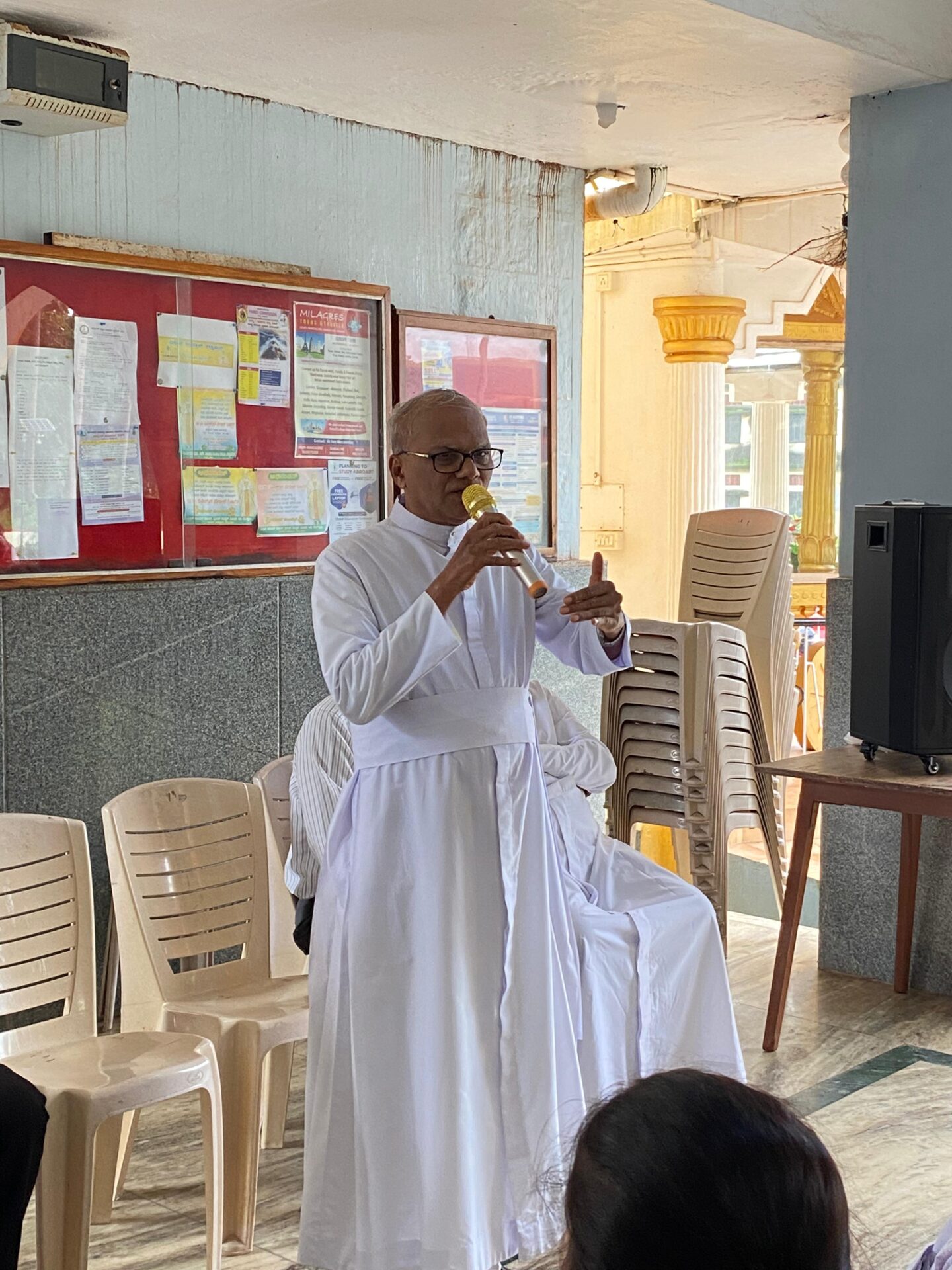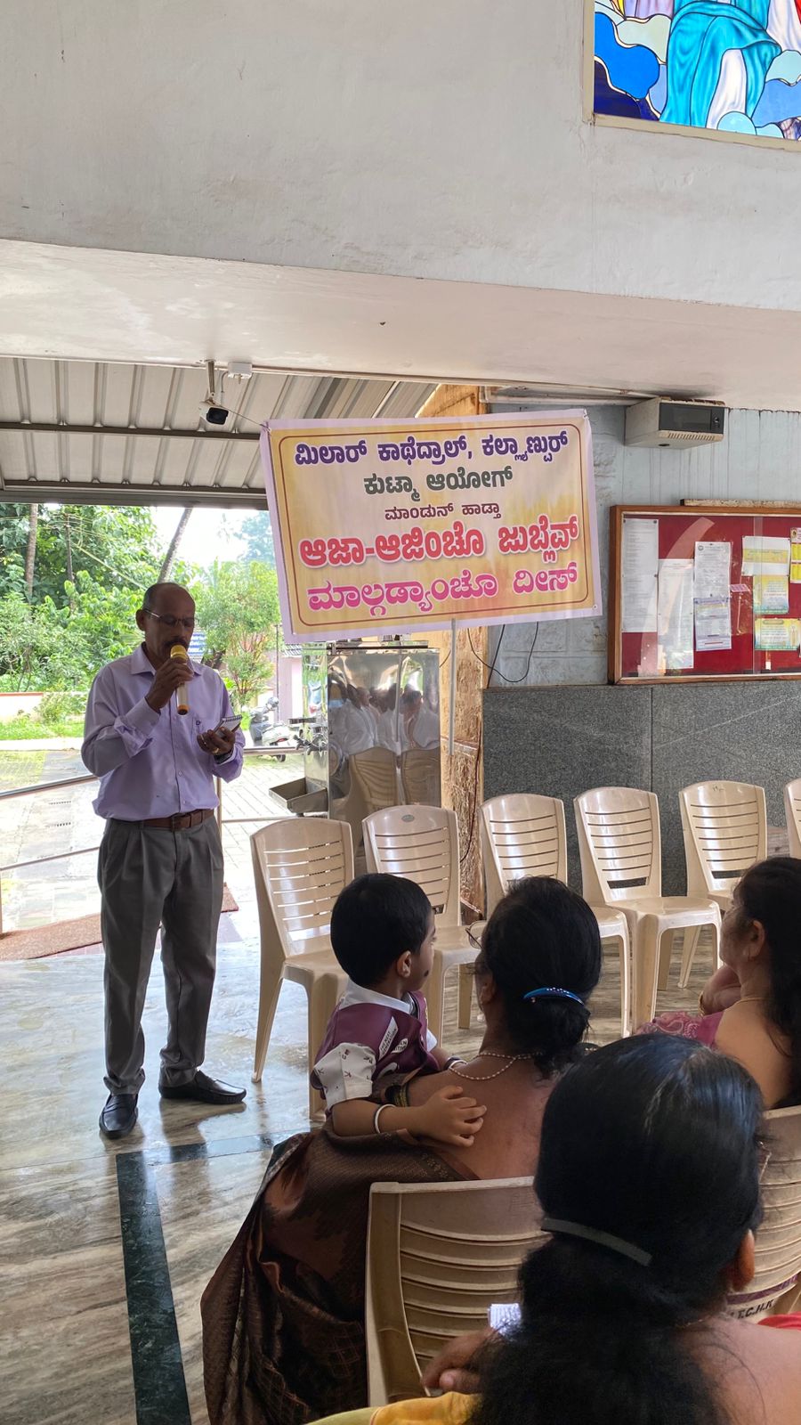 Around 100 of the elderly were present in this gathering with the host Mr Stany Rodrigues. Mr Reginald Lewis welcomed the gathering followed by Mrs. Joyce Pinto and Mr Nery Cornelio sharing their insights about the significance of the Grandparents day. Mrs Joyce spoke on how the grandparents might be ‘Old in age but young in spirits’ and also on the importance of time to be spent with children and grandchildren. Mr Nery Cornelio spoke about how rooted the grandparents are in their life and experience and also on the way we celebrate all our occasions of joy with grandparents. Parish Priest Msgr. Ferdinand Gonsalves also elaborated on the essence of Grandparents in our society and Parish and also on passing the spirit of prayer onto their next generation. Thus the event ended with a vote of thanks by Mrs Shalini Dsouza followed by breakfast to all present.