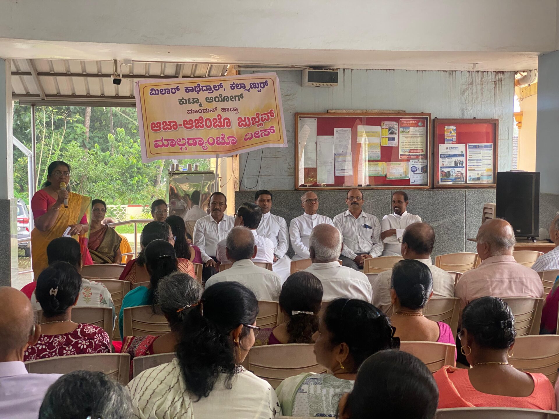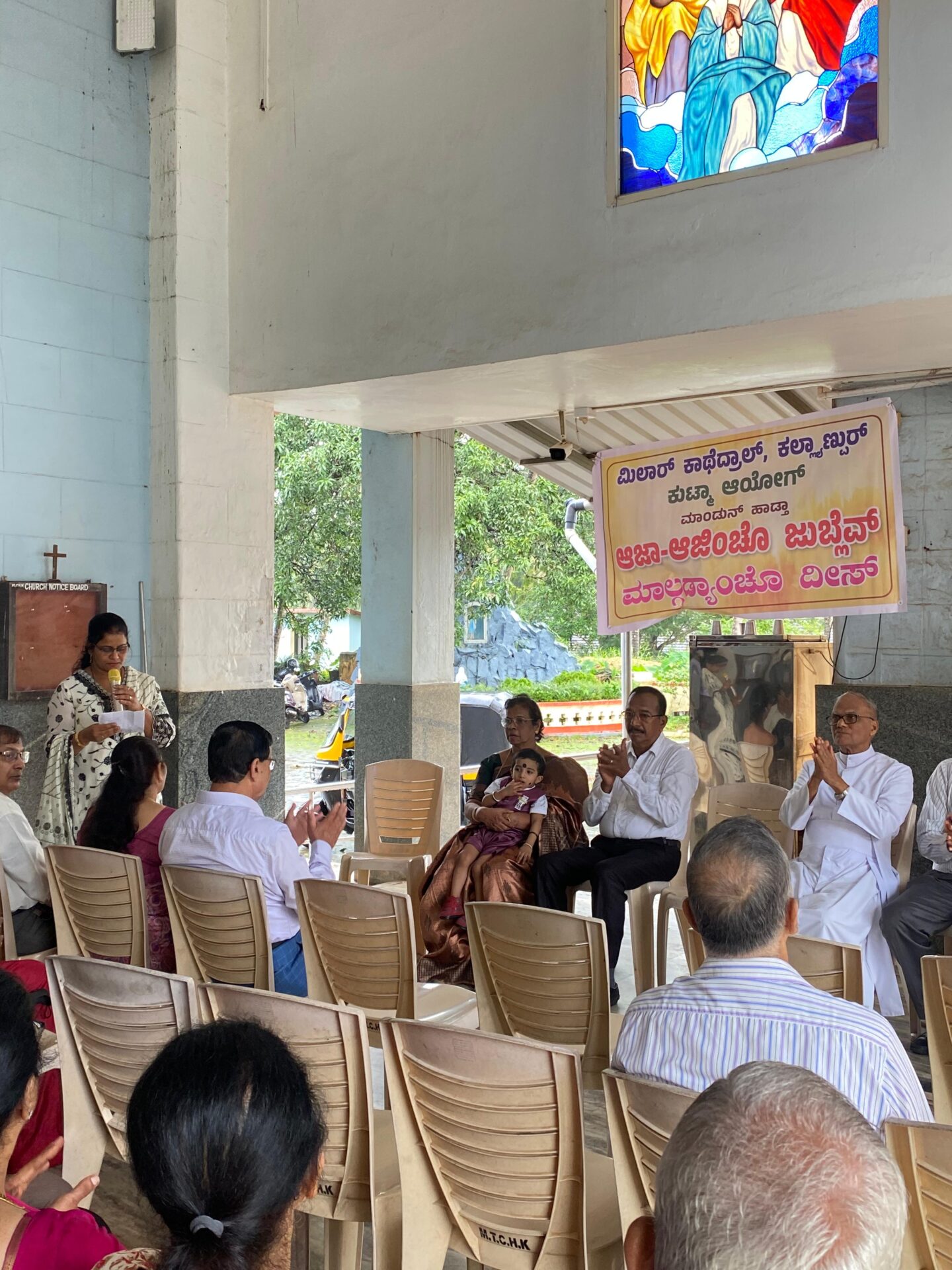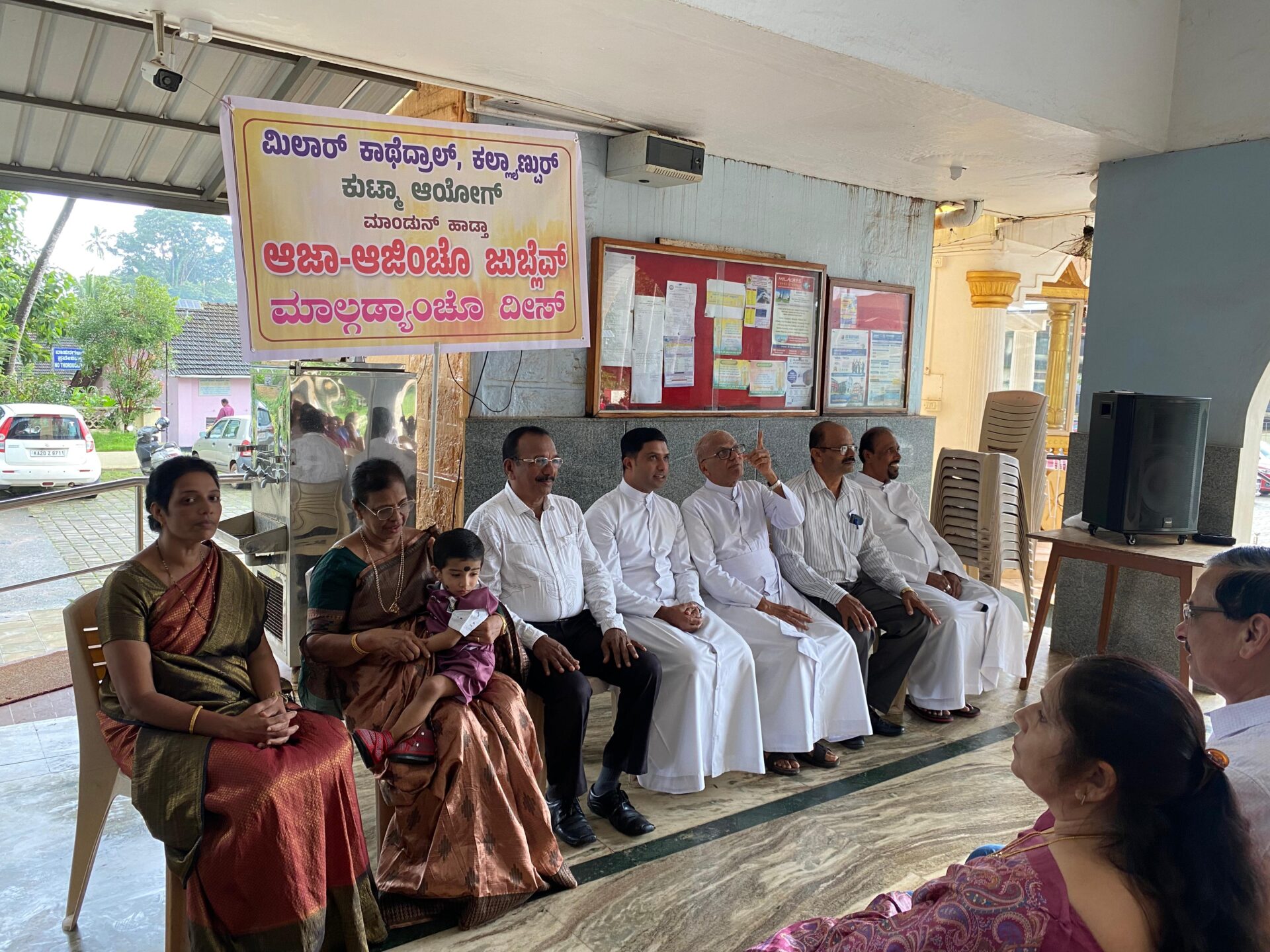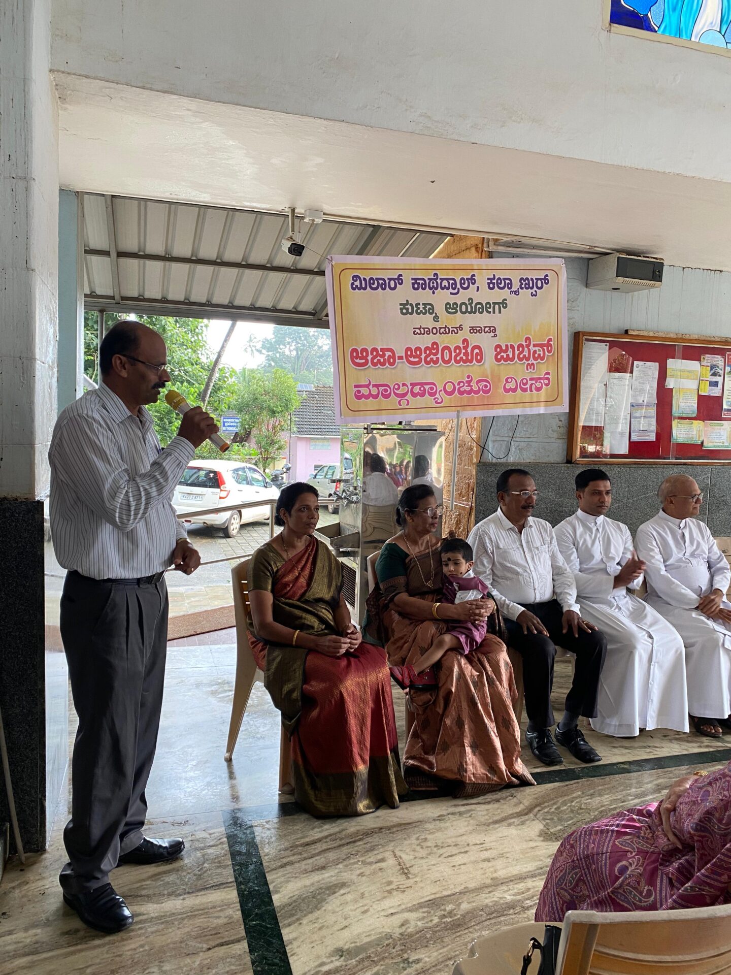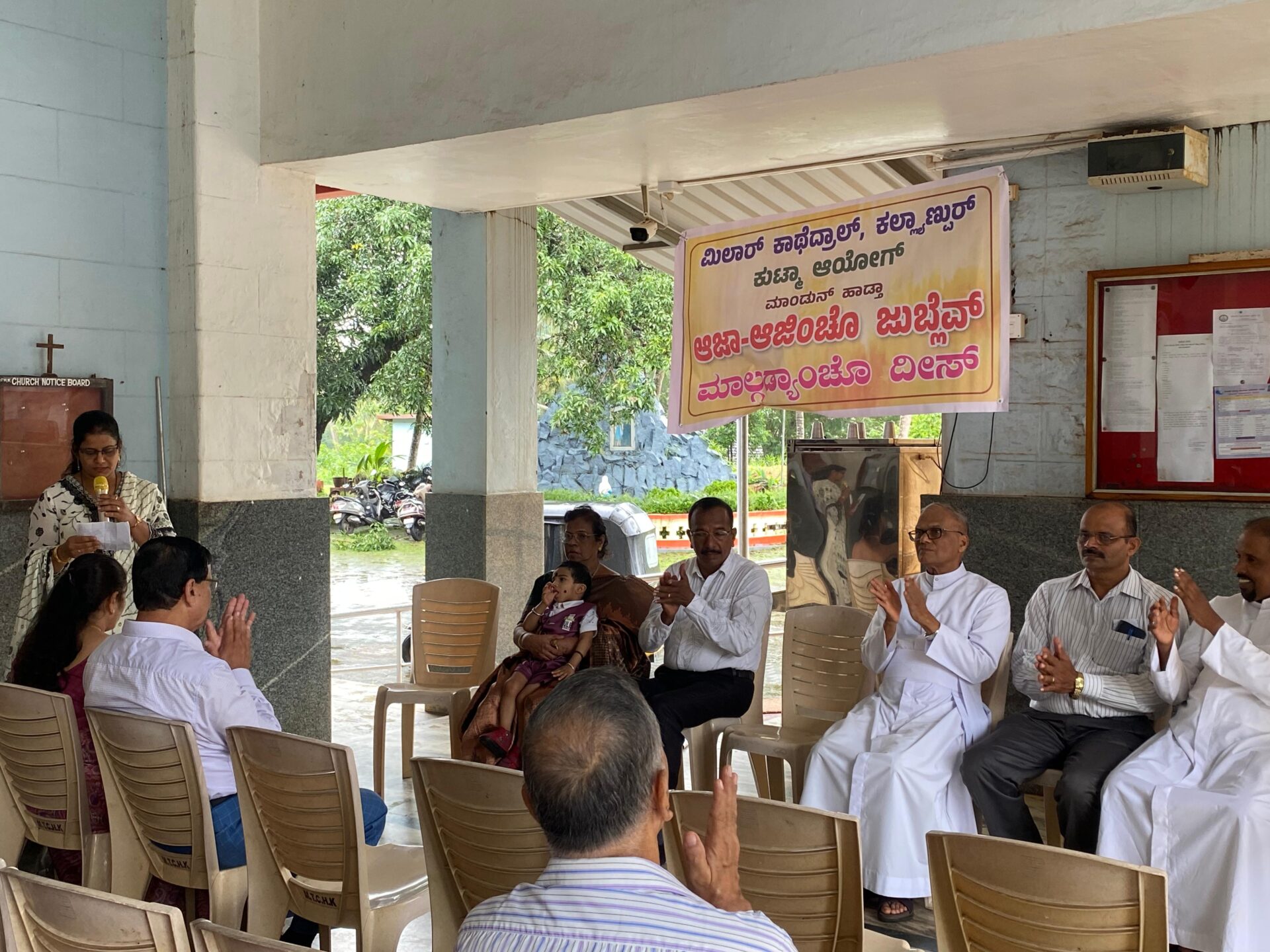 July 27th witnessed the Feast of Saint Anna and Jochim, the grandparents of Jesus, and thus the Family commission of Milagres Cathedral Kallianpur celebrated with all the elderly members of the parish who also carried over the liturgy at the 8:00 AM mass. Post mass a short gathering was called and graced by the presence of Parish Priest Msgr. Ferdinand Gonsalves, Asst. Parish Priest Fr. Pradeep Cardoza, visiting Priest Fr. Anthony Fernandes, Vice president of the Parish Council Mr Melwyn Sequeira, Secretary Eugine Rebello, 18 commission Co Ordinator Mrs Prema Lewis and the Coordinator for Family commission Mr Reginald Lewis.