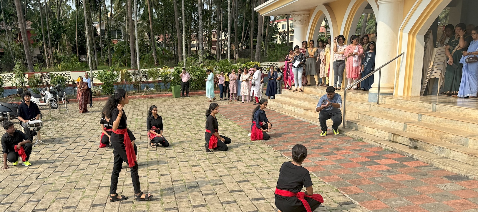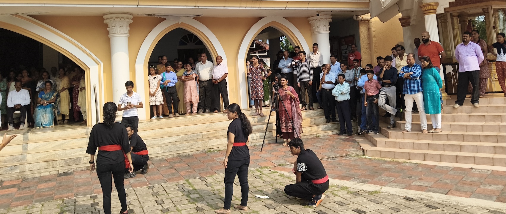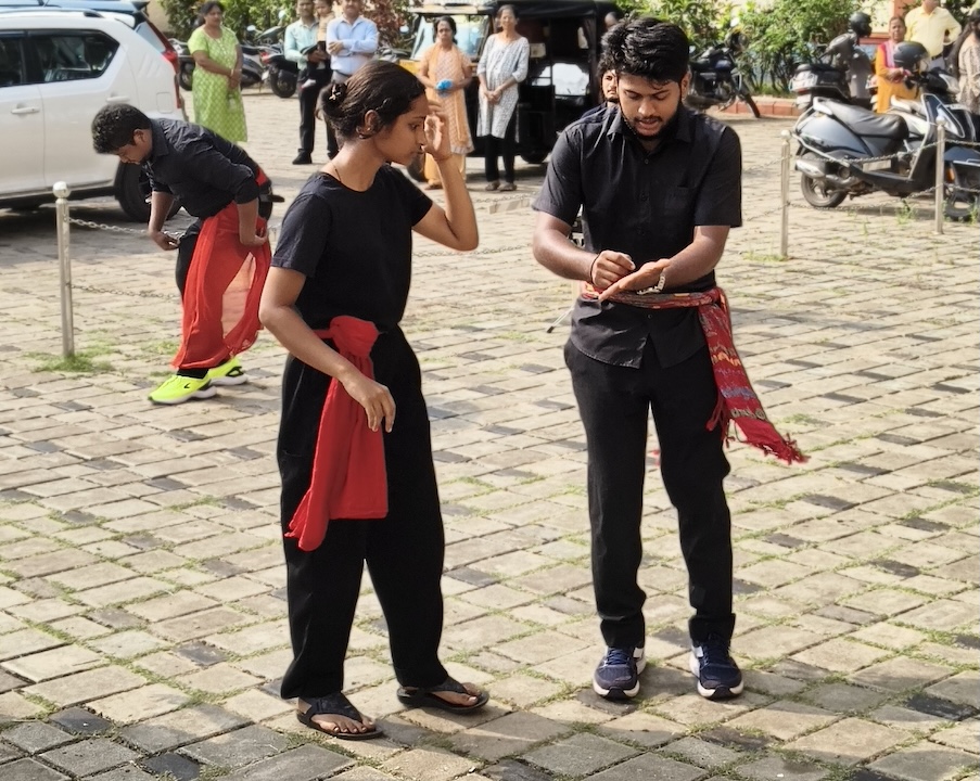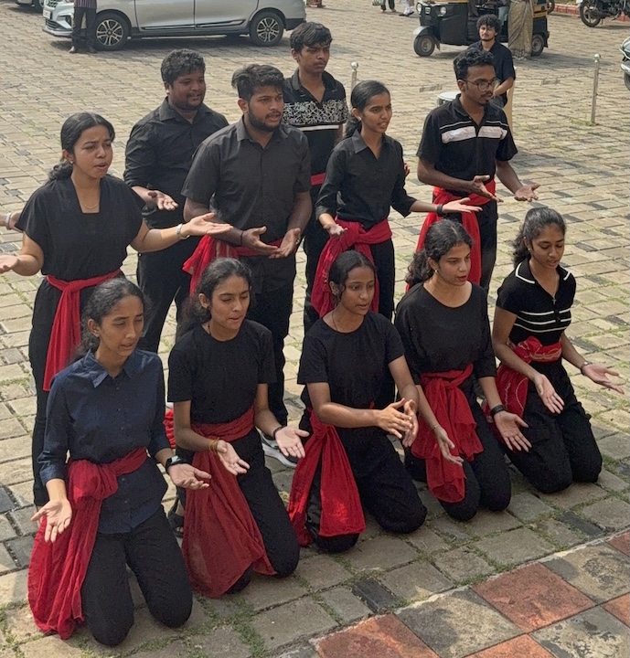 The street play commenced after the 8:00 AM Mass, in the presence of Msgr Ferdinand Gonsalves, our Parish Priest, Mr. Melwin Sequeira, the Vice President of the Parish Pastoral Council (PPC), Mrs. Prema Lewis, other PPC members, and many parishioners who had gathered to witness the performance. Their presence added great encouragement and solemnity to the occasion.