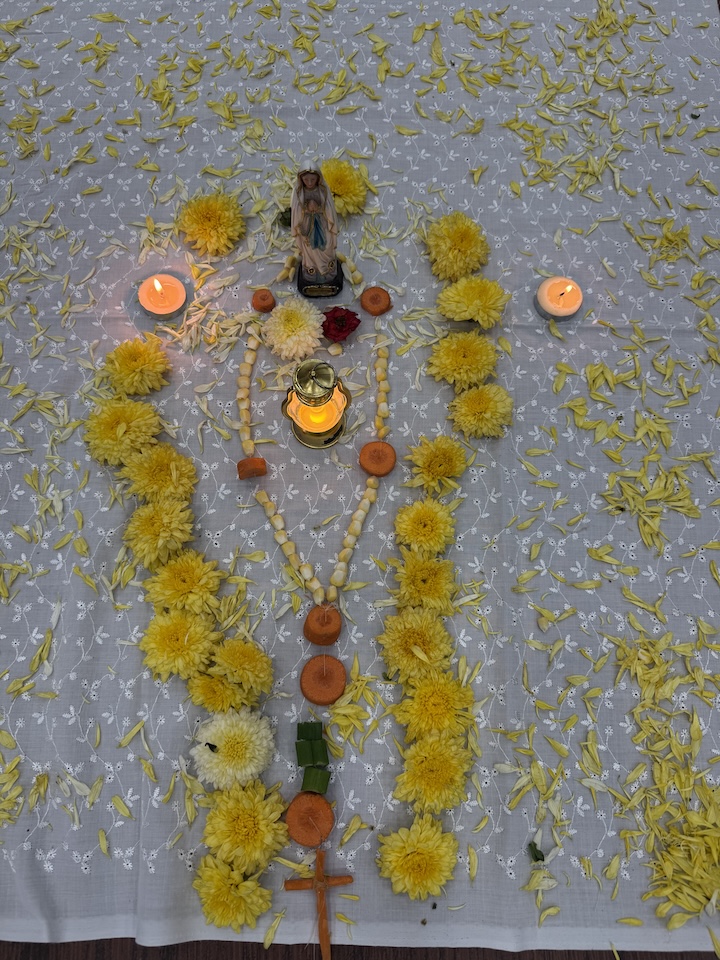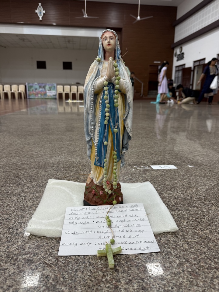 Children showcased remarkable creativity by preparing rosaries using vegetables, cereals, pulses, beads, and other natural and household materials. Each rosary was not only a work of art but also a reflection of the child’s prayerful intention and devotion to Mary.