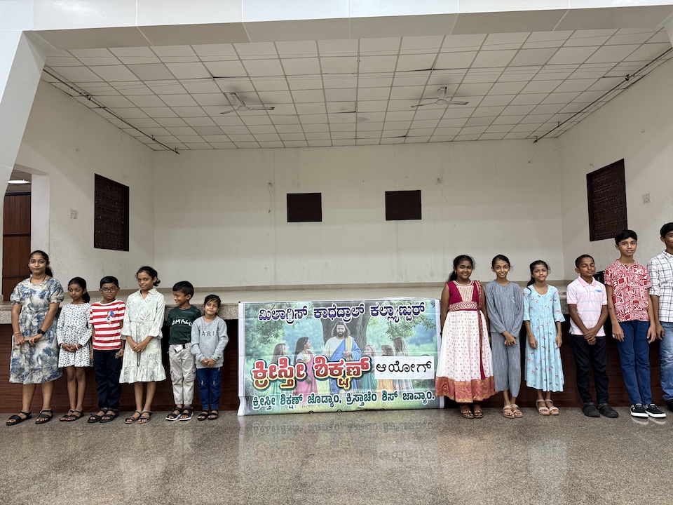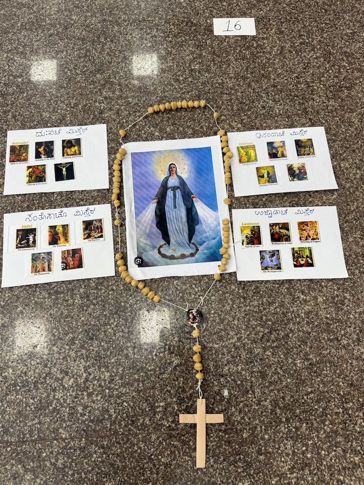 On the rainy morning of 25th May 2025, following the 8:00 AM Mass, a Marian Rosary Competition was organized by the ICYM and Sunday Catechism team at the Tri-Centenary Hall of Milagres Cathedral. This unique and creative initiative was held in honour of Mother Mary, encouraging children to express their devotion through artistic and prayerful engagement.