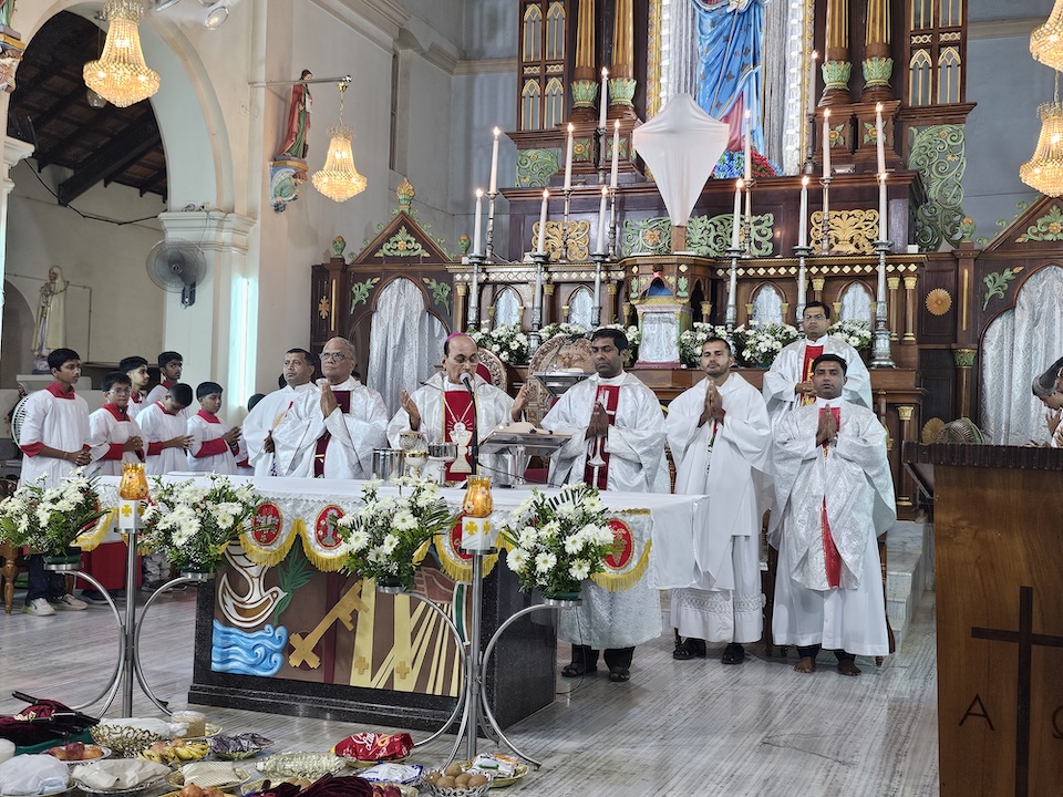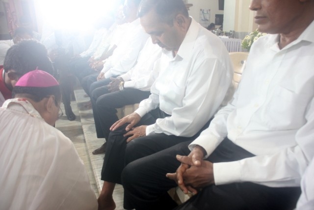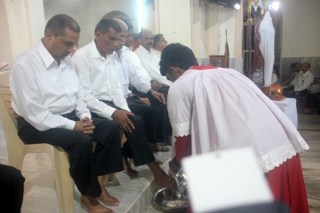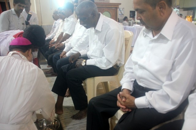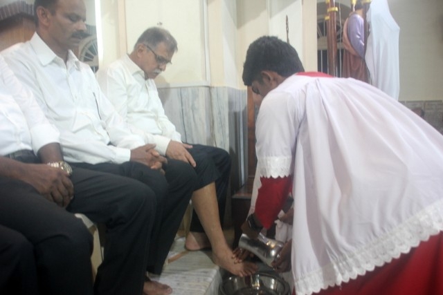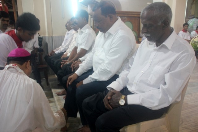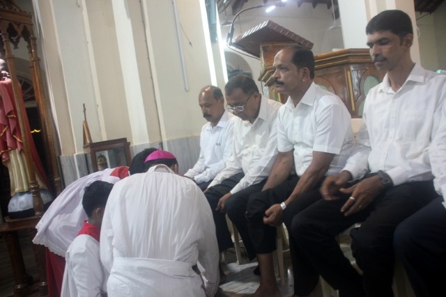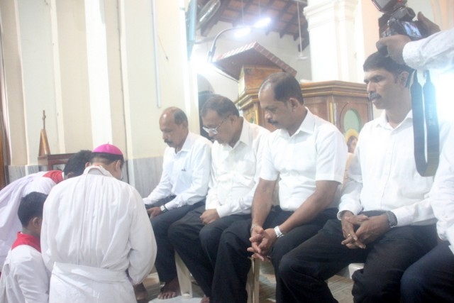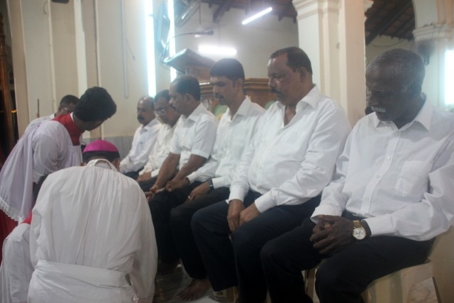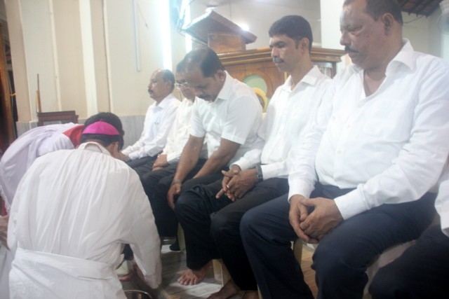 The Maundy Thursday service was held at Milagres Cathedral Kallianpur on March 28, Thursday at 6:30 PM with solemnity. The liturgical celebration was presided over by Most Rev. Dr. Gerald Isaac Lobo, Bishop Udupi Diocese.