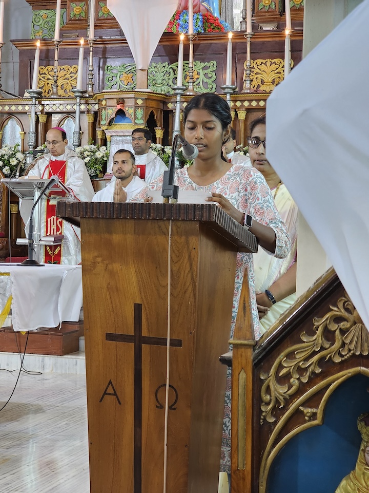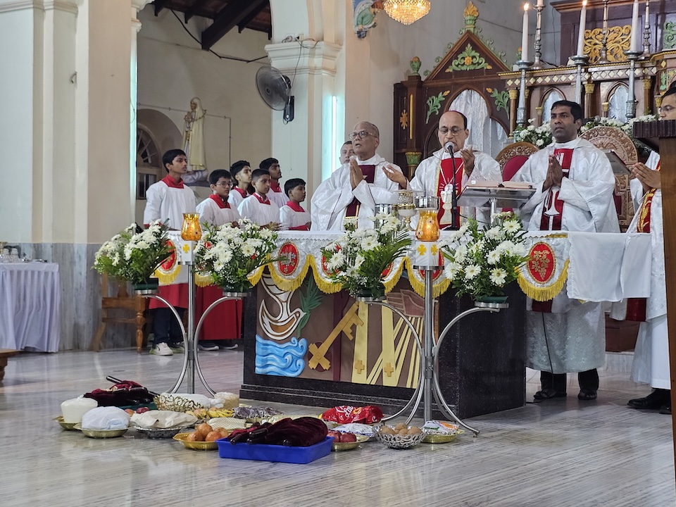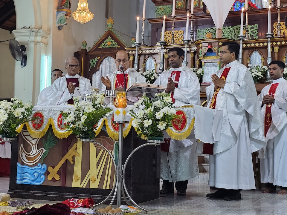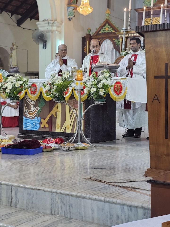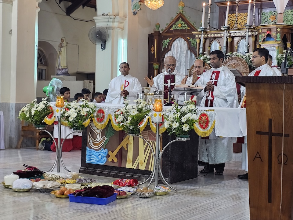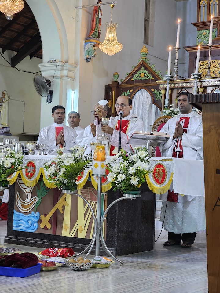 Concelebrants with the Bishop were, Msgr. Ferdinand Gonsalves, Fr. Stephan D’Souza Chancellor of diocese, Fr. Pradeep Cardoza, Rev. Fr.Dr. Jencil Alva, Fr. Ronson D’Souza, and Fr. Manoj Furtado.