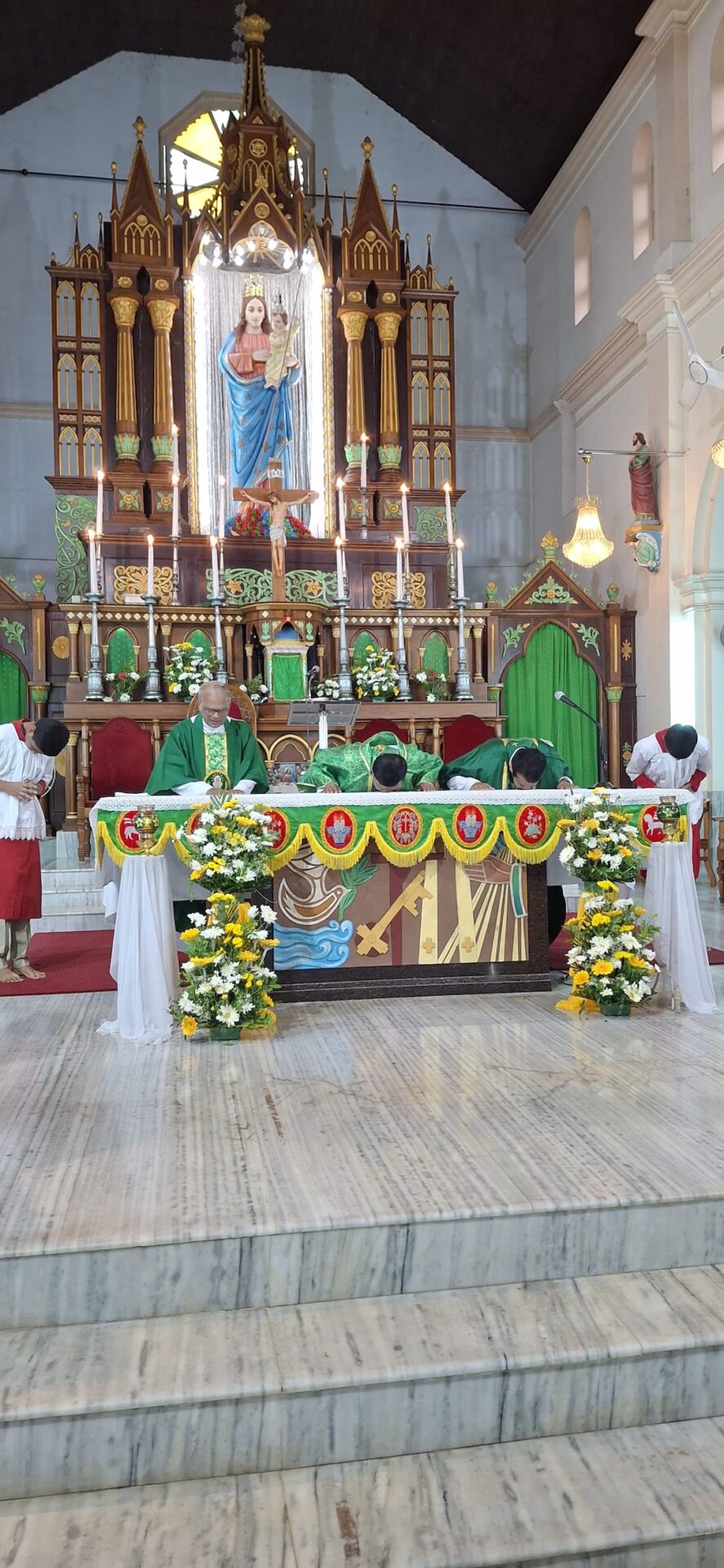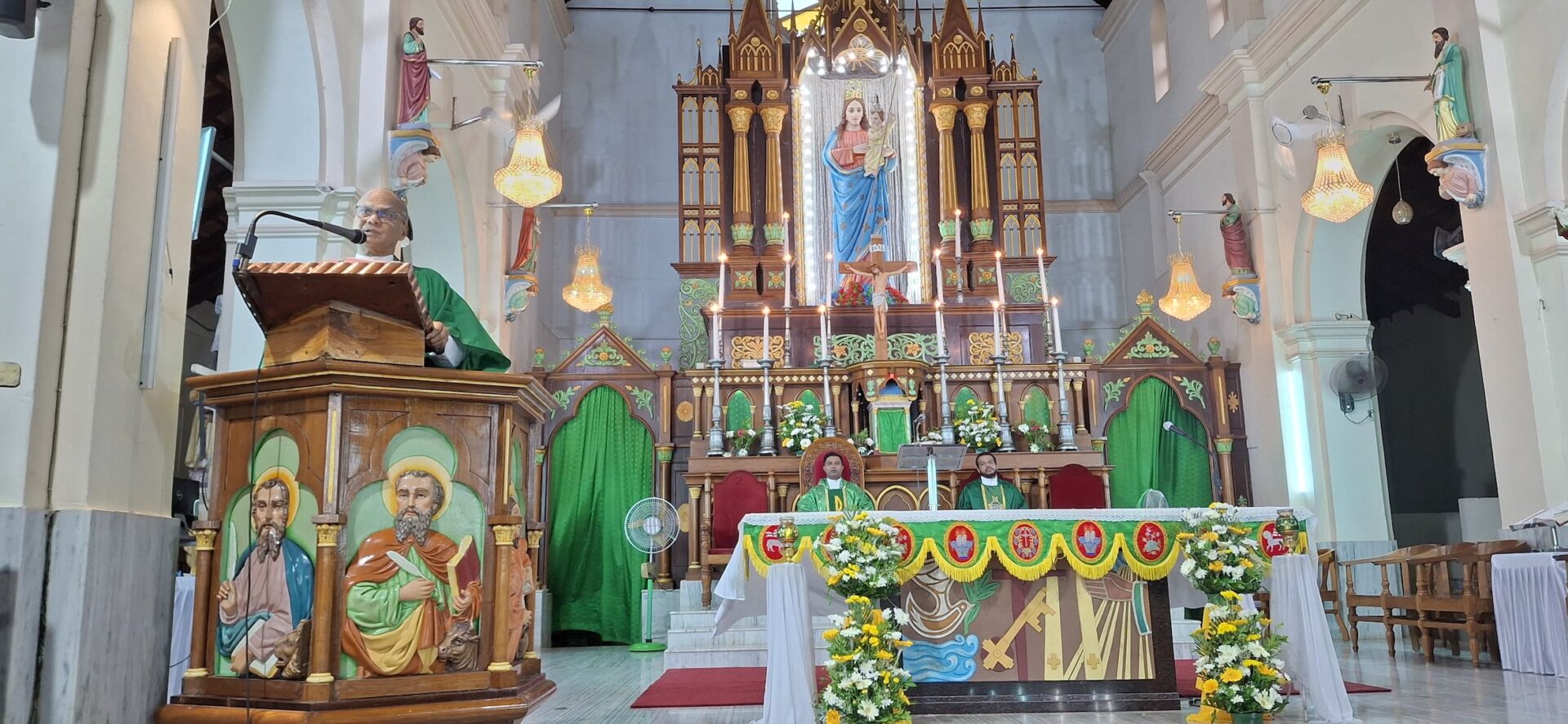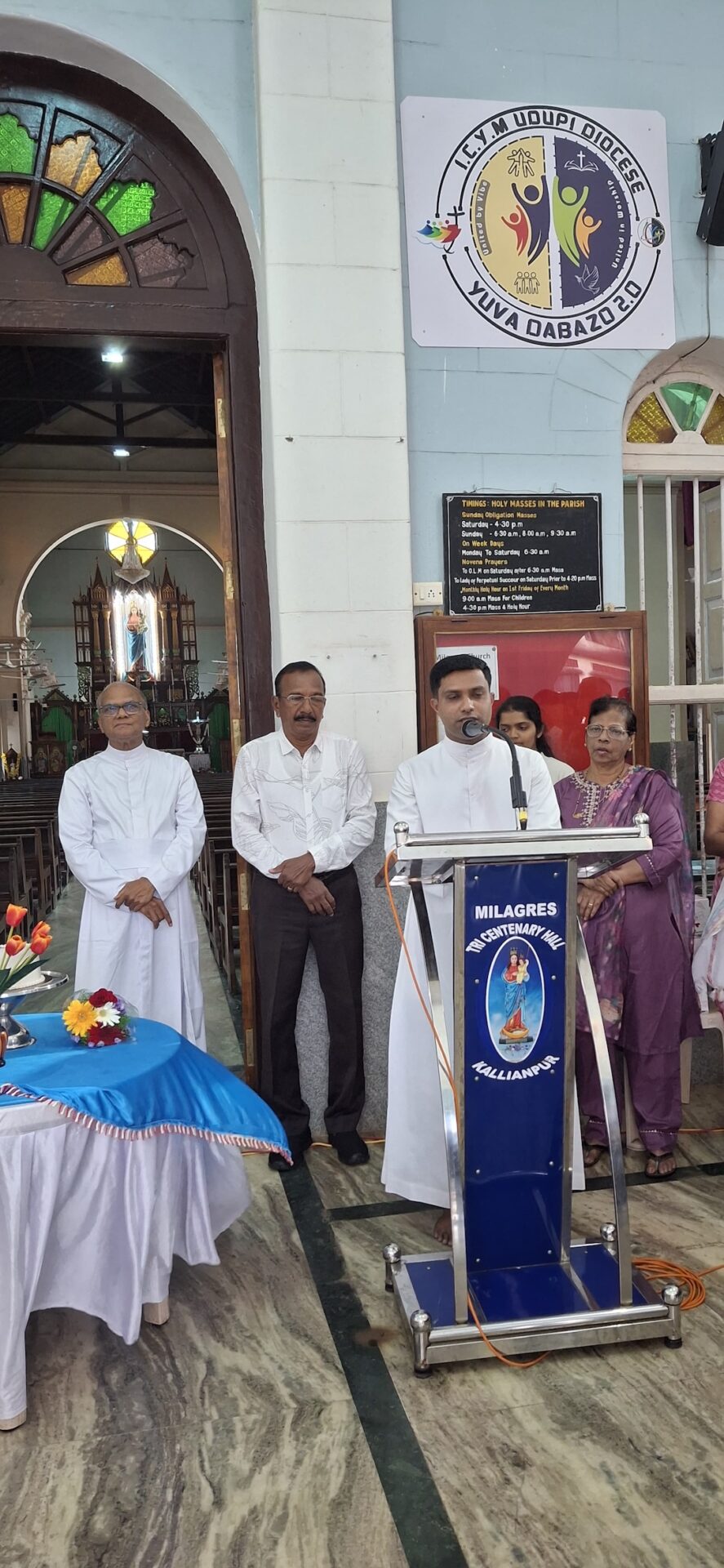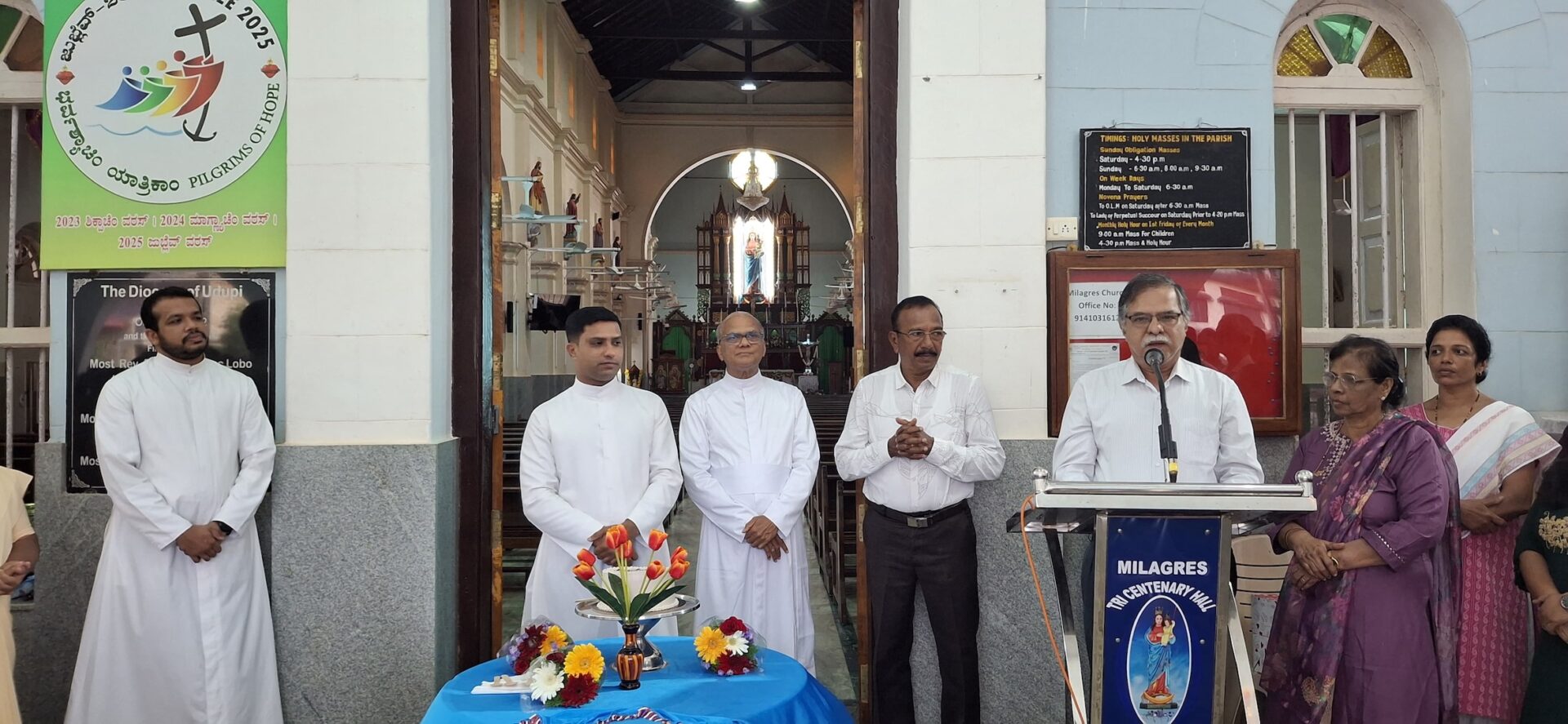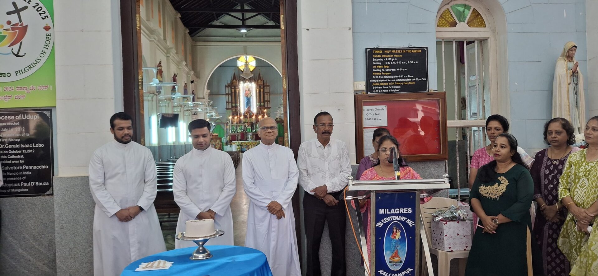 The parishioners of Milagres Cathedral, Kallianpur, joyfully celebrated the birthday of Rev. Fr. Pradeep Cardoza, Assistant Parish Priest, on 18th September 2025. The celebration began with the Holy Eucharist at 6:45 a.m. at Milagres Cathedral. The Mass was concelebrated by Fr. Pradeep Cardoza, Msgr. Ferdinand Gonsalves, Parish Priest and Vicar General of the Diocese of Udupi, and Fr. Parel Fernandes, Spiritual Director of the Pilar Fathers. The liturgy was further enriched by the melodious voices of the choir, which added devotion and beauty to the celebration.