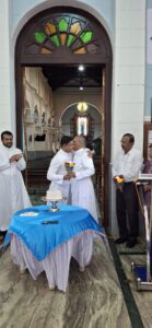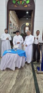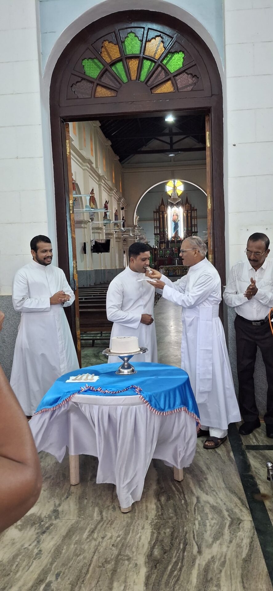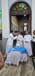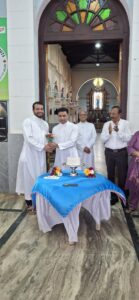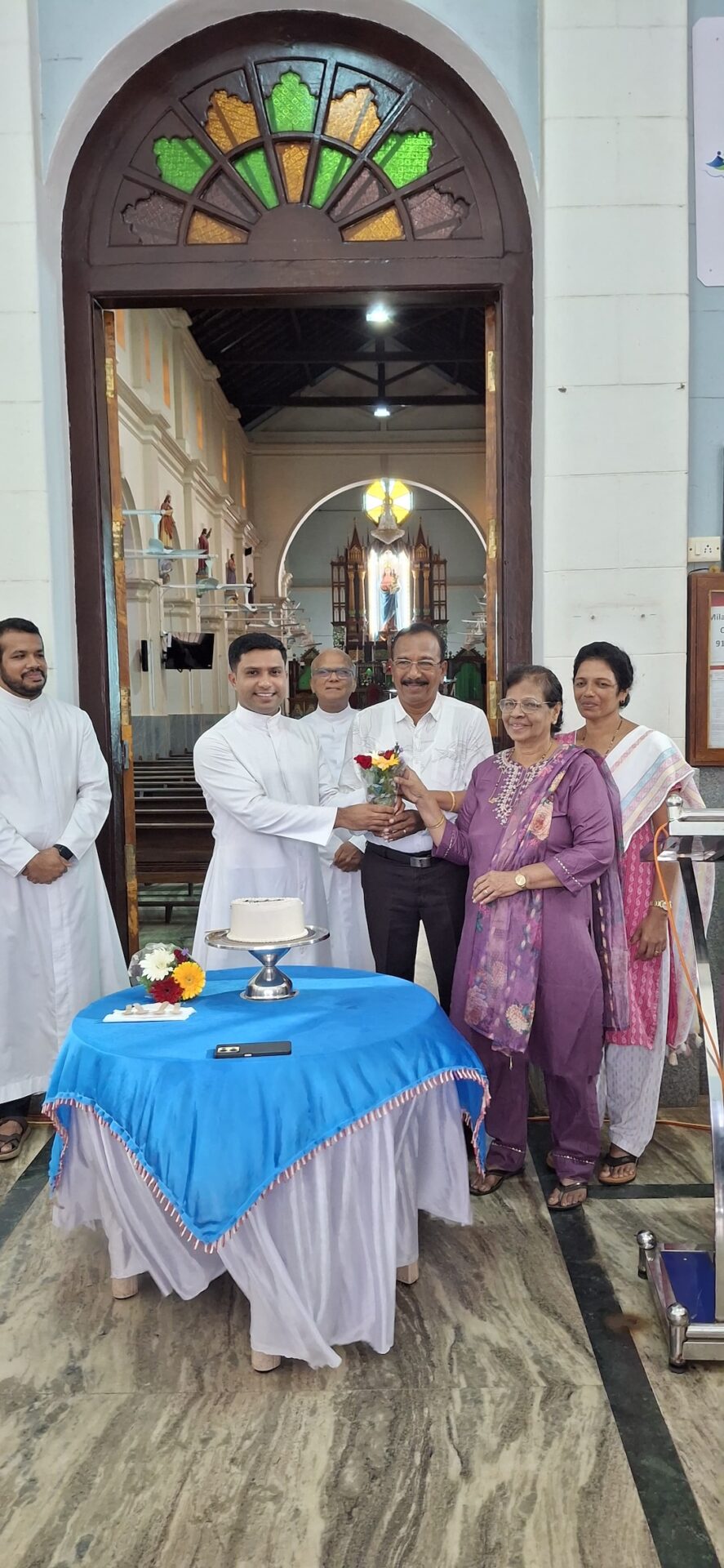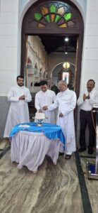 Following the Mass, a brief yet meaningful birthday gathering was held. The program was compered by Mrs. Sharon Dsouza, while Mrs. Diana Dsouza extended a warm welcome to the gathering. The choir members sang a special wishing song as Fr. Pradeep cut the cake, marking the joyous occasion. Dr. Gerald Pinto shared his reflections, recalling fondly that Fr. Pradeep would be remembered among the few Assistant Parish Priests who made a lasting impression on him.