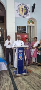 Fr. Pradeep, in his response, expressed heartfelt gratitude to all those who had come together to celebrate his special day, especially the members of the parish finance committee. Msgr. Ferdinand Gonsalves delivered the presidential address, appreciating the young priest’s dedicated service to the parish. Ms. Janice Dsouza proposed the vote of thanks, after which parishioners personally greeted and conveyed their good wishes to Fr. Pradeep.