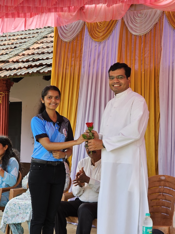 The morning began with a short but meaningful stage program that set the tone for the day’s festivities. The gathering was blessed with the presence of several dignitaries — Msgr Ferdinand Gonsalves, our Parish Priest; Fr Pradeep Cardoza, Assistant Parish Priest; Fr Dr Jencil Alva, Resident Priest; Mr Melwin Sequeira, Vice President of the Parish Pastoral Council; Mrs Eugine Rebello, Secretary of PPC; Mrs Prema Lewis, Coordinator of the 20 Pastoral Commissions; Mrs Ann Monis, ICYM Animator; and Mrs Sheela Menezes, Coordinator of Sunday Catechism.