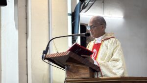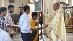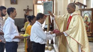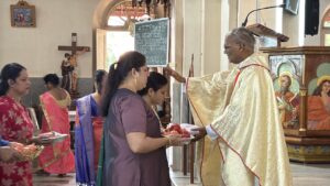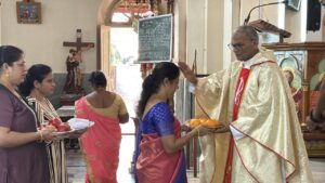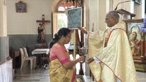 The liturgy was meaningfully led by members of Uppoor A Ward. The introduction was given by Mr Pius Lewis, the First Reading was proclaimed by Mr Reginald Lewis, and Mrs Jacintha Lewis read the Second Reading. Mr Vern Rodrigues led the responsorial hymn, while the Prayers of the Faithful were read by Mr Daniel Rodrigues and Mr Delan Lewis. Ward members also came forward with their offerings, expressing their faith and thanksgiving.