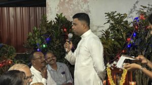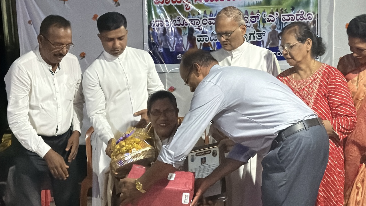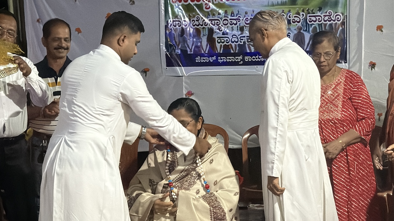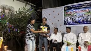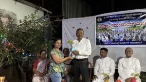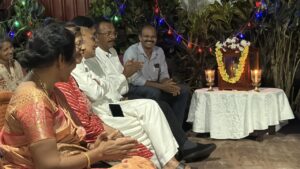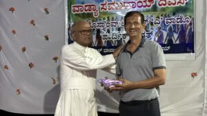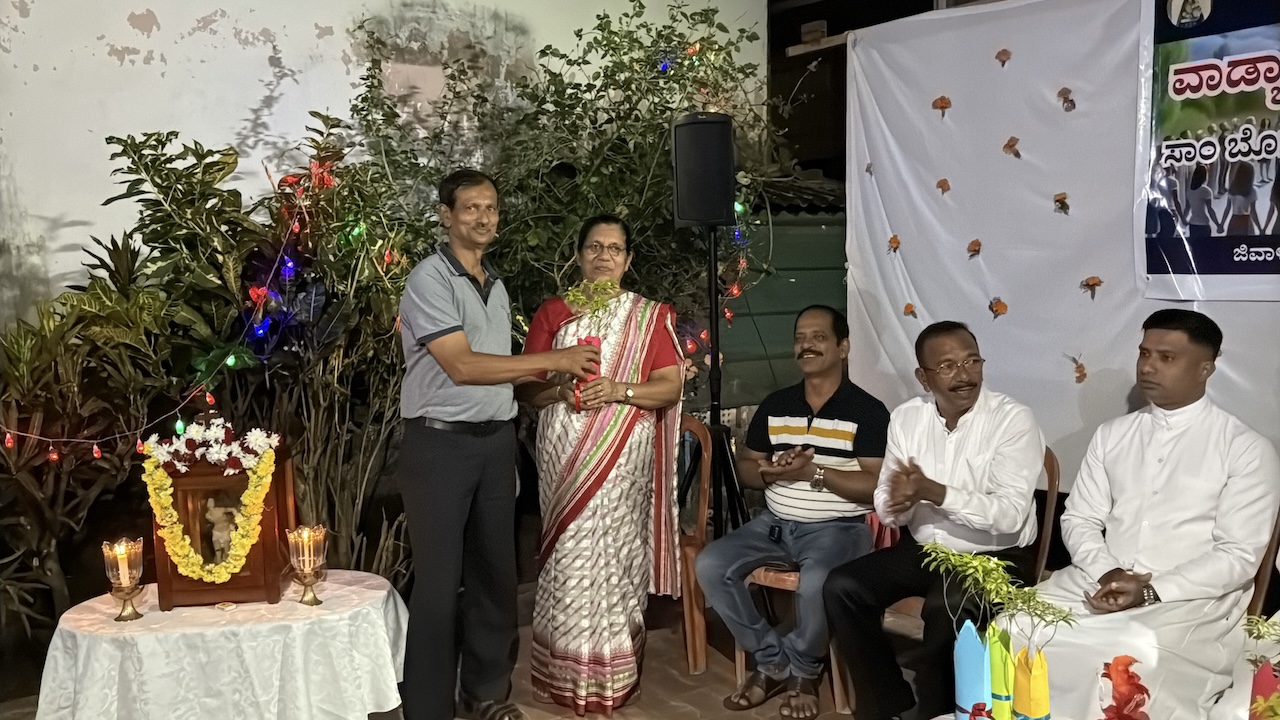 Later in the evening, at 6:00 p.m., a get-together was organised at the residence of Mr Reginald Lewis, Gurkar of Uppoor A Ward. The dais was graced by Very Rev. Msgr Ferdinand Gonsalves (Rector), Fr Pradeep Cardoza (Assistant Parish Priest, Milagres Cathedral), Mr Melwyn Sequeira (Vice-President, Parish Pastoral Council), Mrs Eugene Rebello (Secretary, Parish Pastoral Council), Mrs Prema Lewis (Coordinator, Parish Pastoral Commissions), Mr Godfrey Lewis (Gurkar, Uppoor B Ward), Mr Steven Almeida (Gurkar, Thenkabettu Ward), Mr Reginald Lewis (Gurkar, Uppoor A Ward), and Mrs Anita D’Silva (former Gurkarn, Uppoor A Ward).